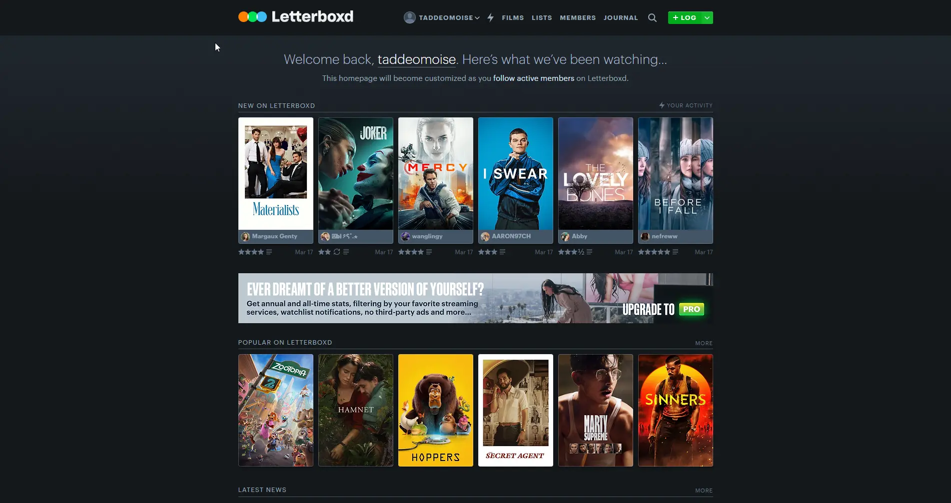 LETTERBOXD ACTUAL WEBSITE DESKTOP MEMBER MODE LANDING PAGE