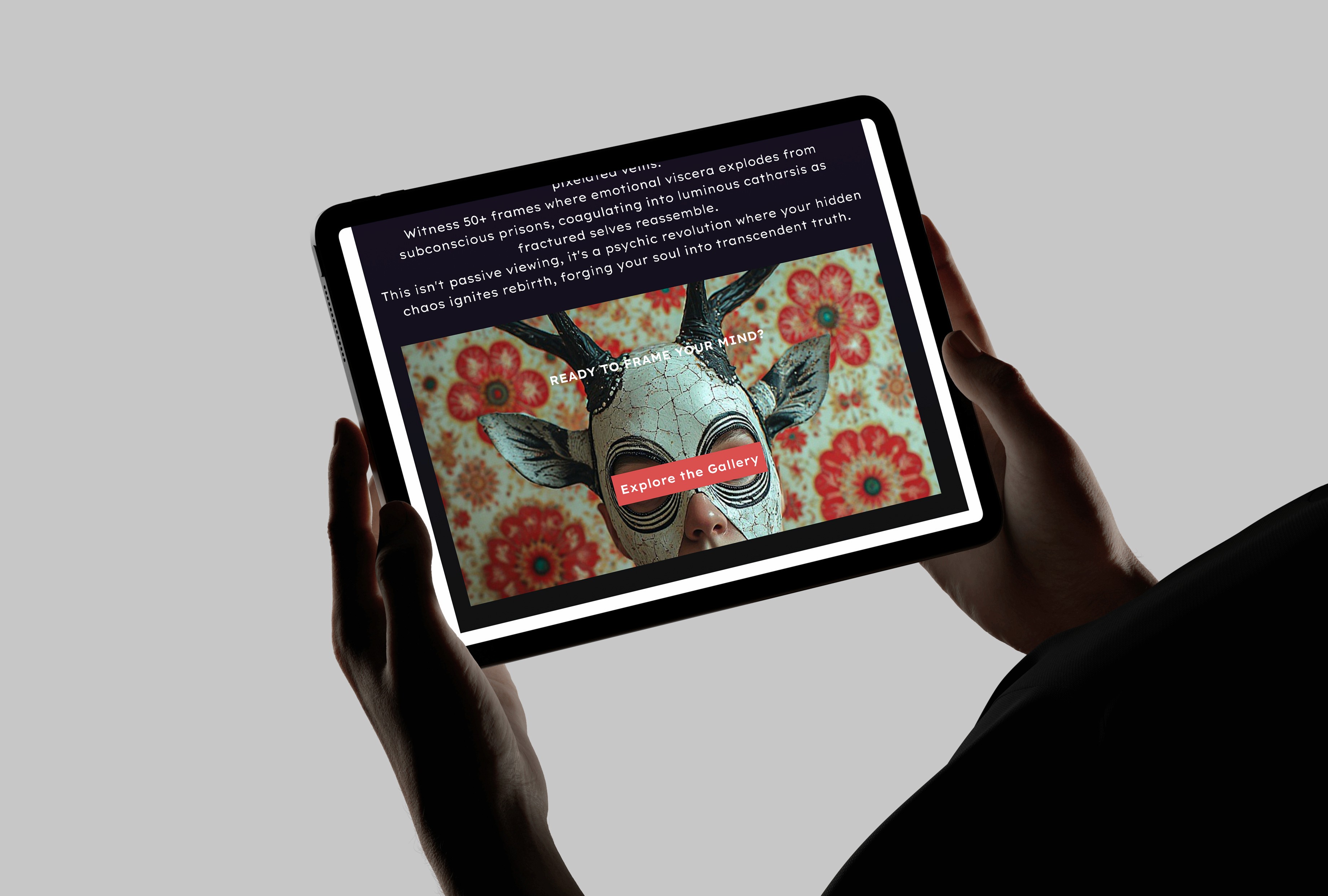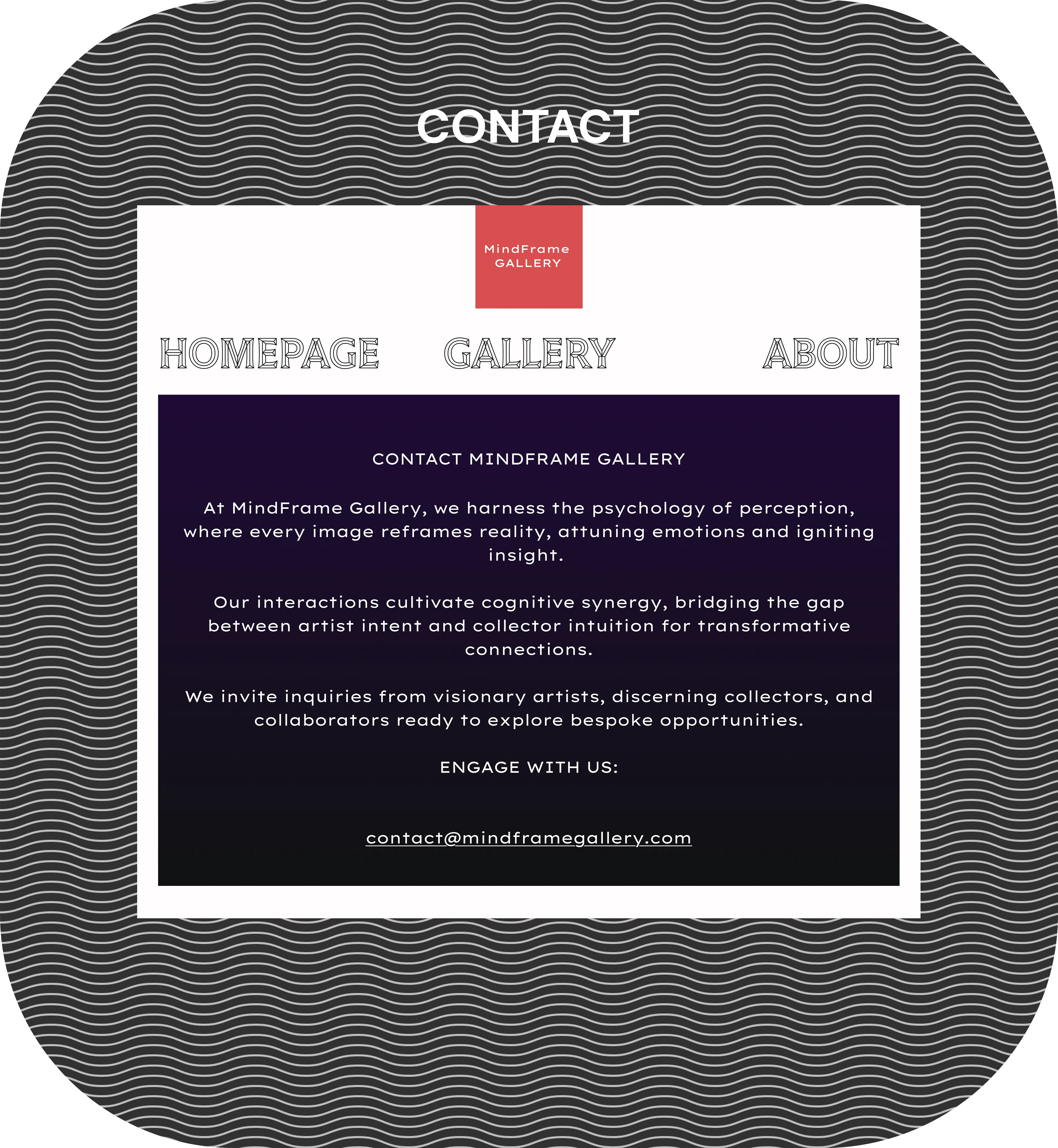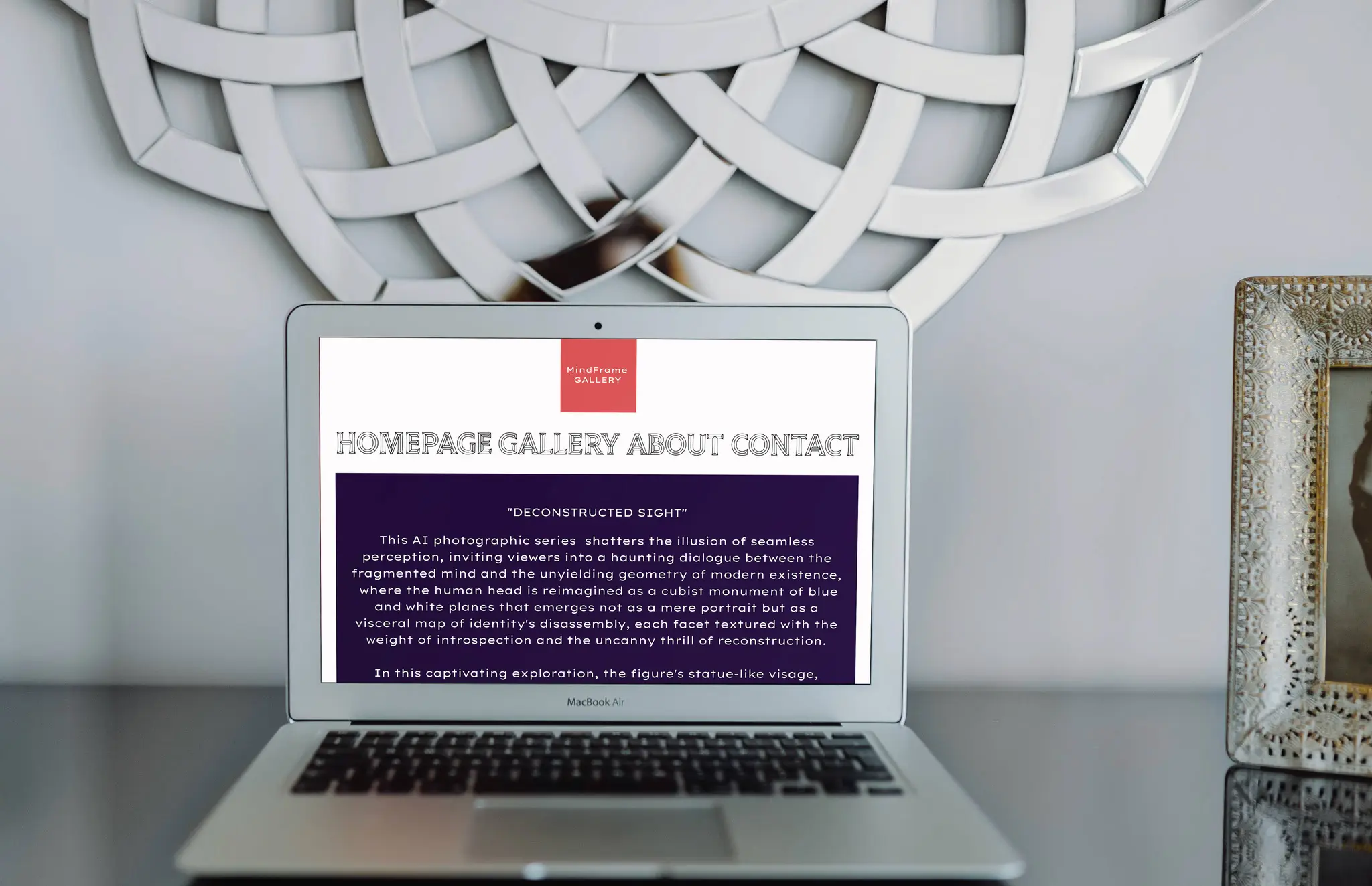 MindFrame Gallery's website, evoking intellectual intrigue and effortless immersion that aligns perfectly with the