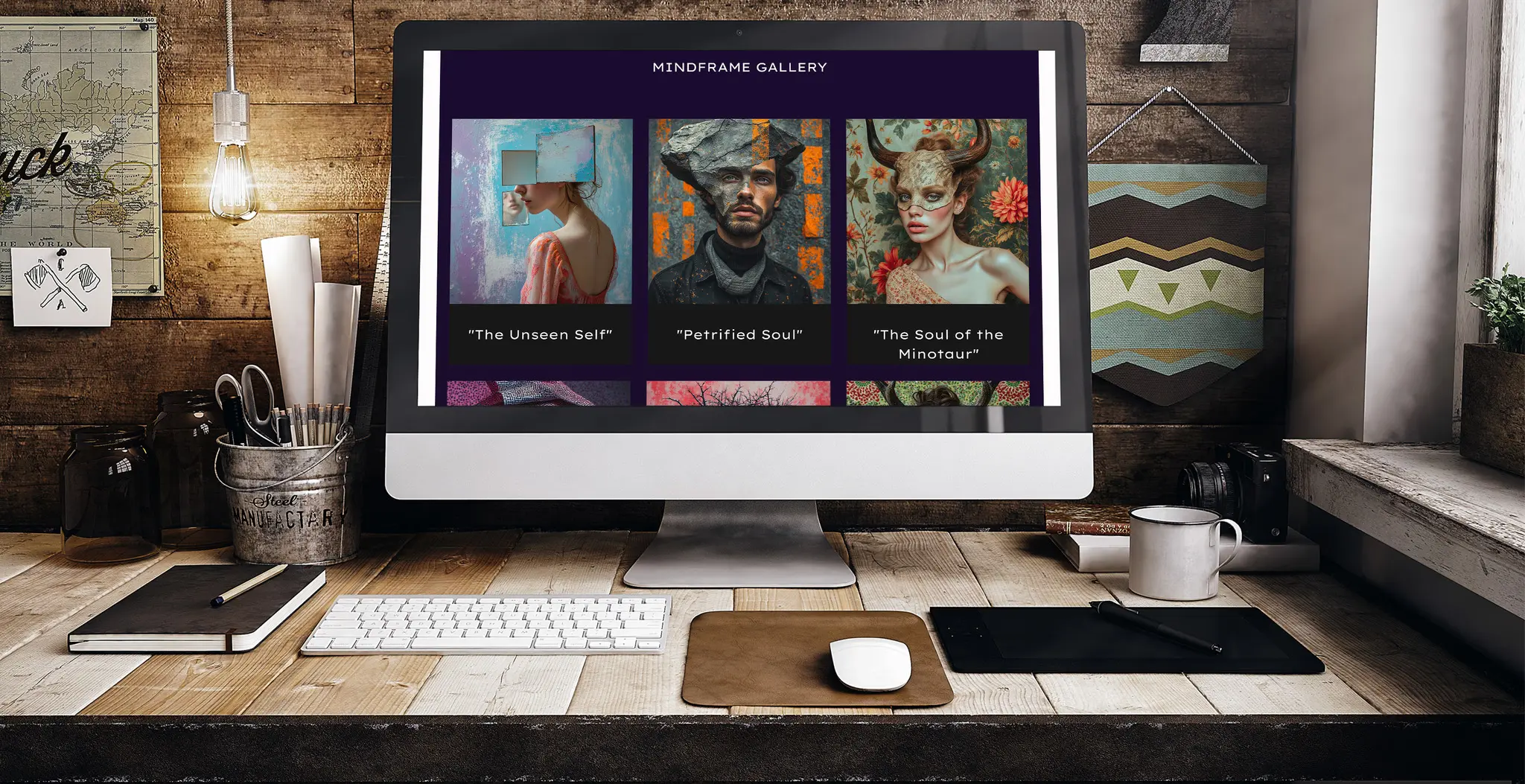 MindFrame Gallery's solution delivers a striking visual impact through meticulously curated "mind frames" that