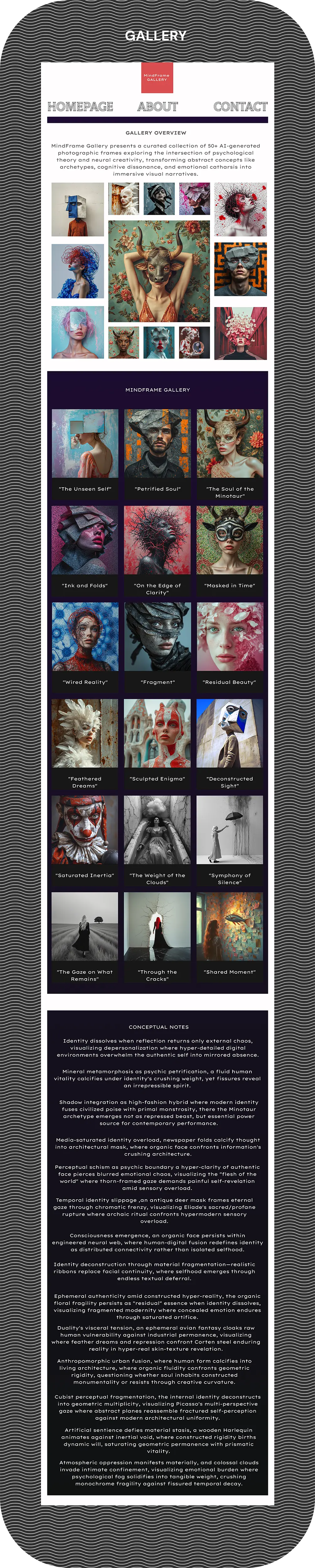 The MindFrame Gallery website emerges not as mere digital infrastructure, but as a deliberate philosophical