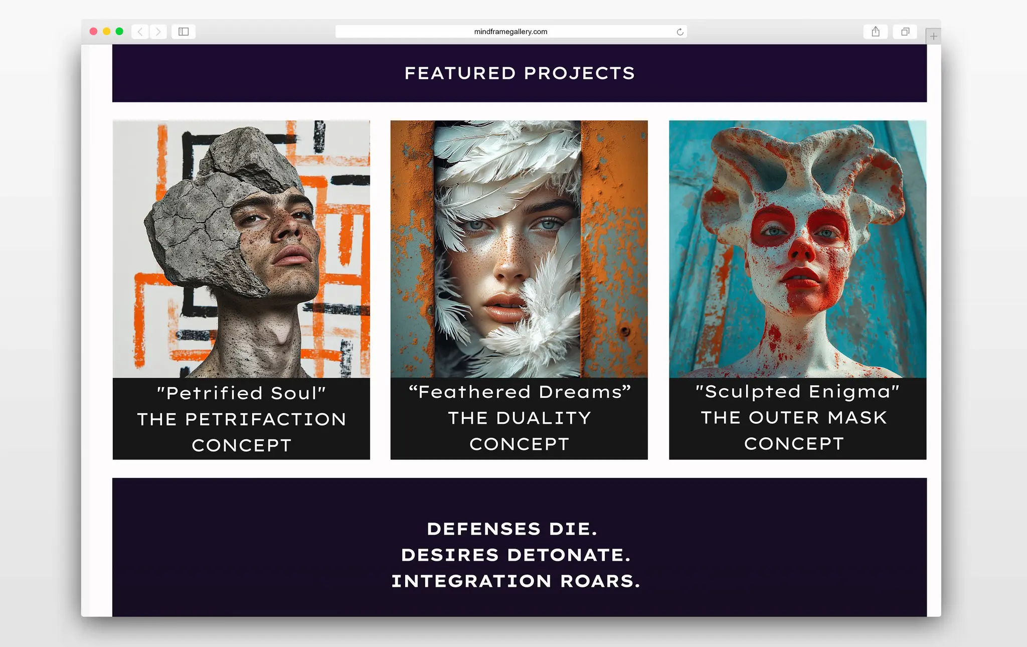 The MindFrame Gallery website emerges not as mere digital infrastructure, but as a deliberate philosophical intervention, a living extension of the gallery's core thesis where hyper-real visions dismantle perceptual boundaries, transforming passive browsing into active existential confrontation.
