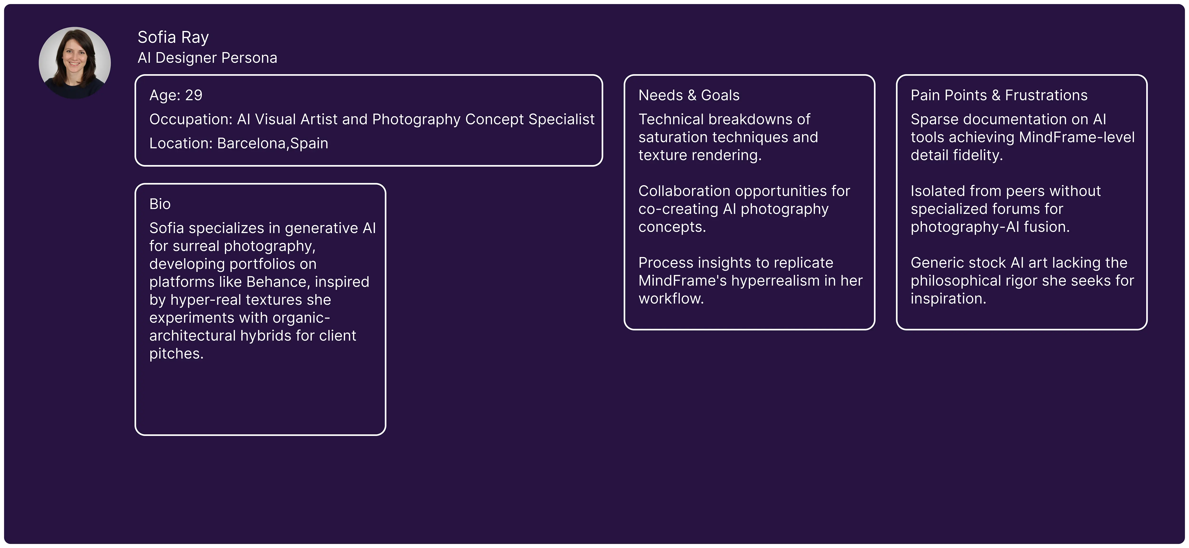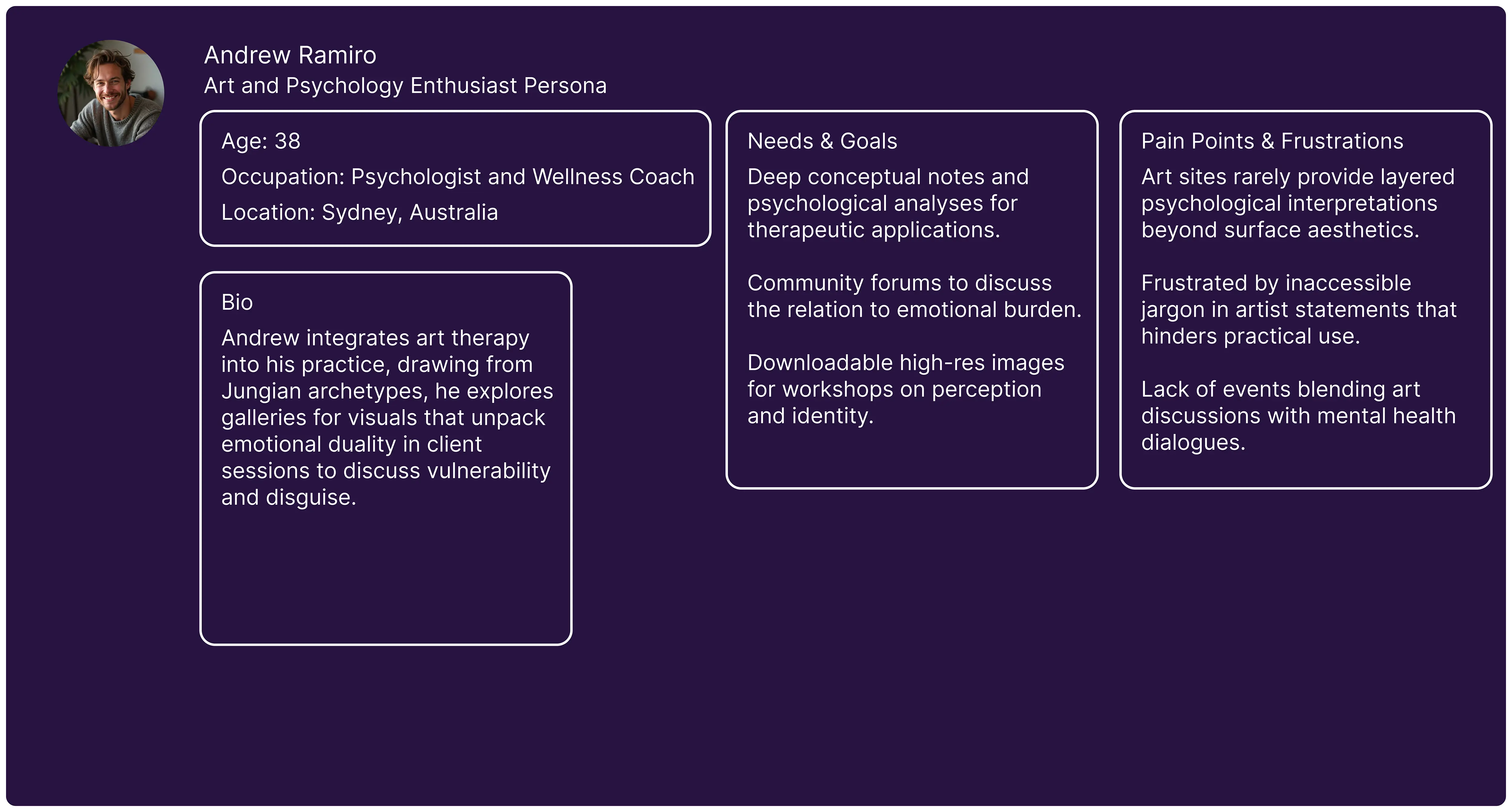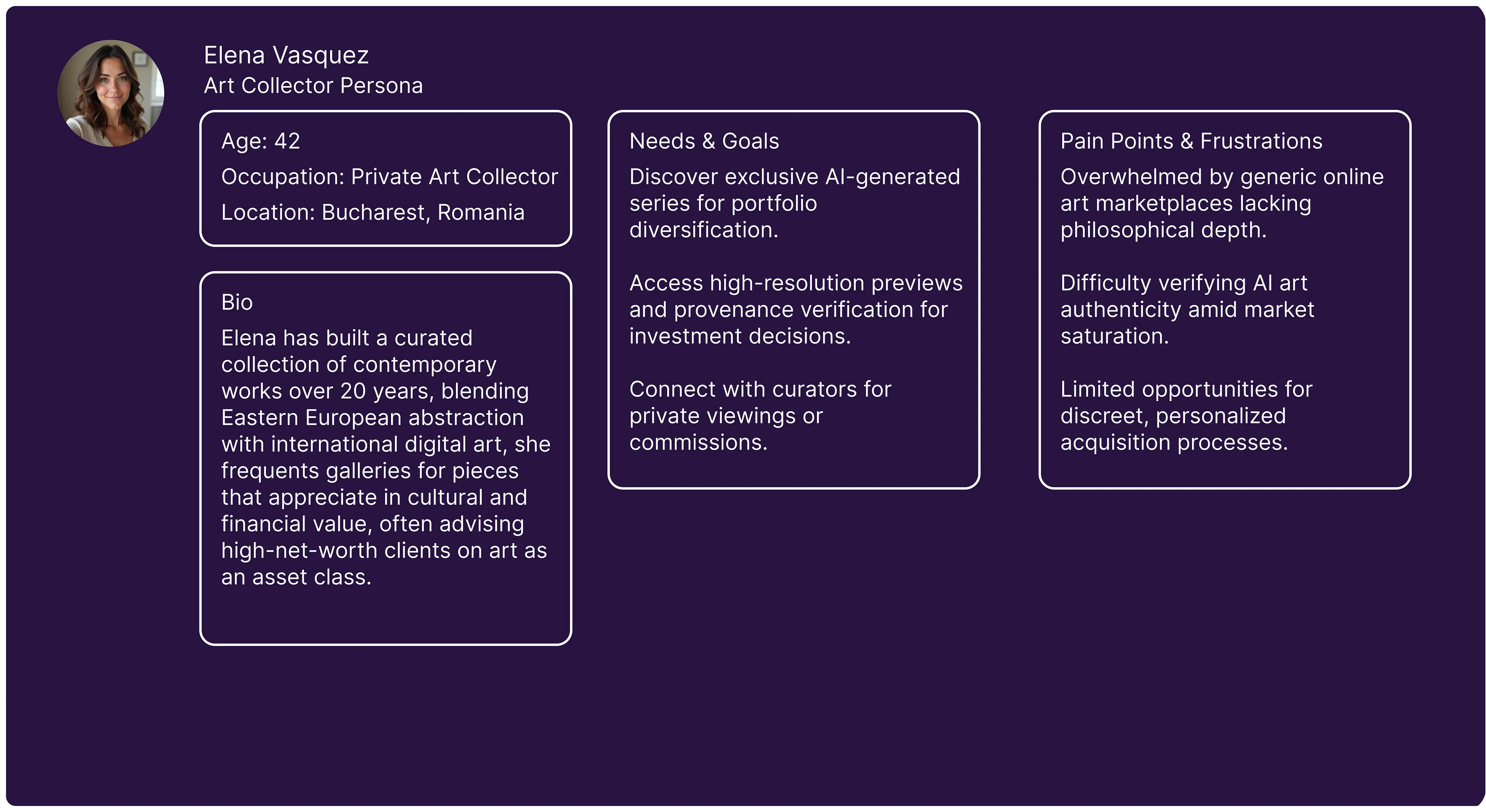 The study of user personas at MindFrame Gallery refines the psychological "mind frame" solution by profiling visitors, artists, collectors, and connoisseurs, to tailor UI/UX, curation, and interactions for deeper perceptual resonance and engagement.